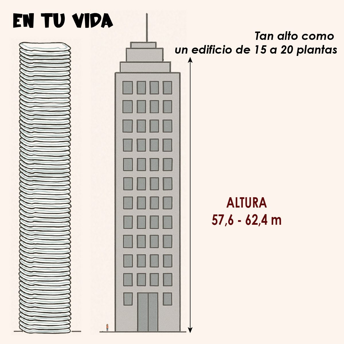 | ¿Qué altura tendrían? | 1,44 – 1,56 m | 57,6 – 62,4 m |