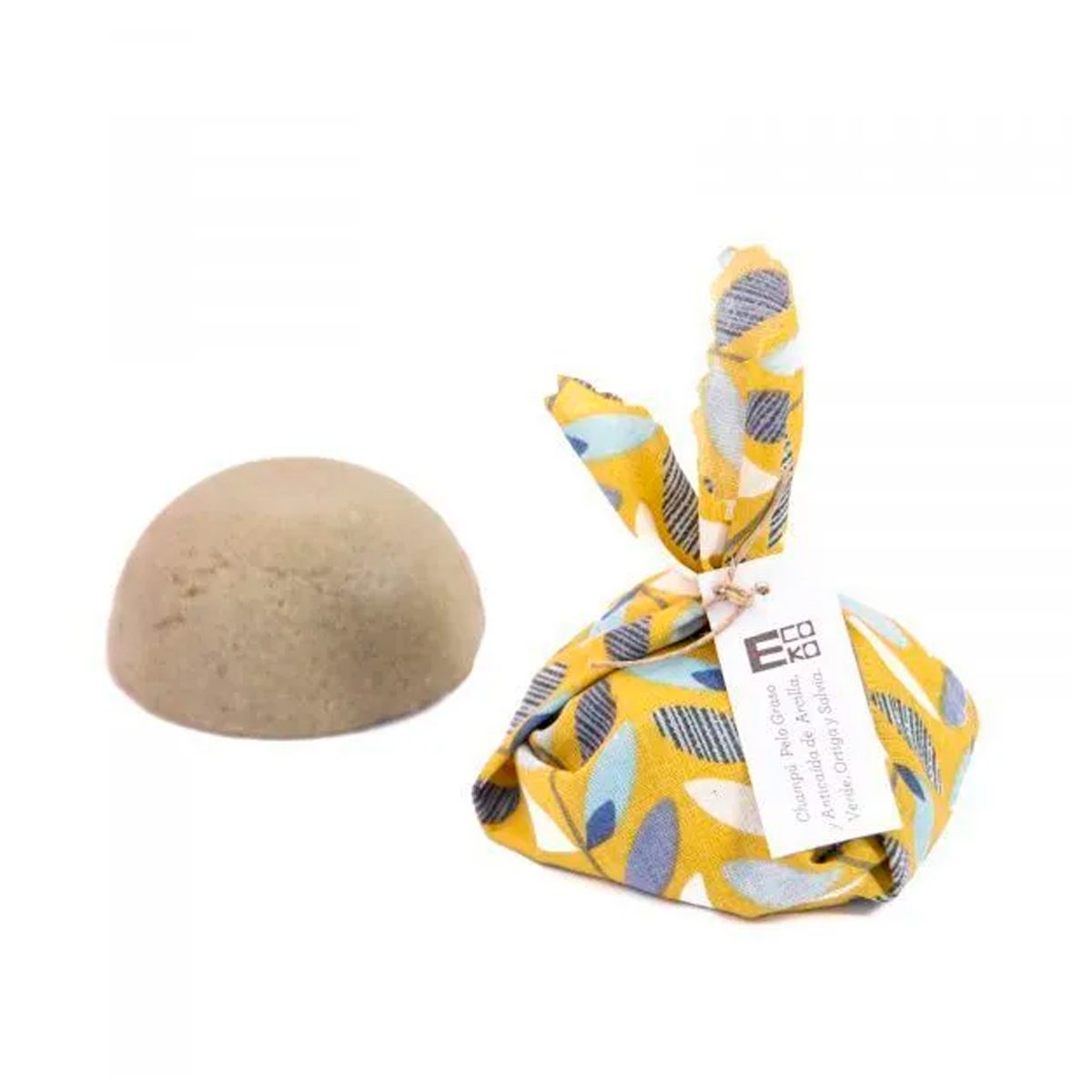 Champú suavizante sólido en envoltura de tela para pelo de color o canas con Índigo y Mejorana